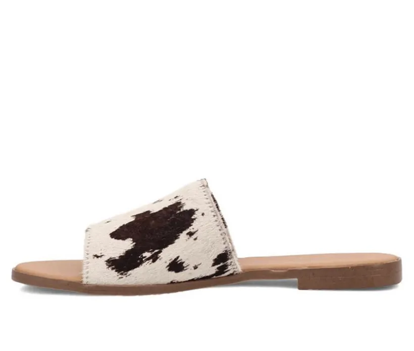 This laid-back slide sandal brings a playful western touch to warm-weather outfits with its bold cow-print upper. The wide band offers a secure feel while keeping the design simple and easy to wear. Perfect for casual days, weekend outings, or adding a fun twist to everyday basics.