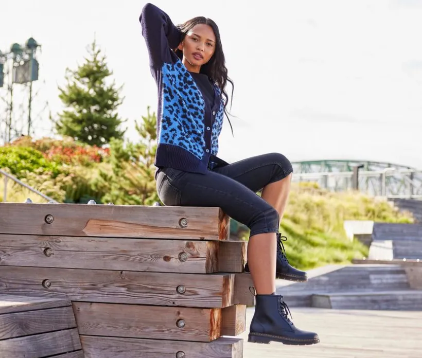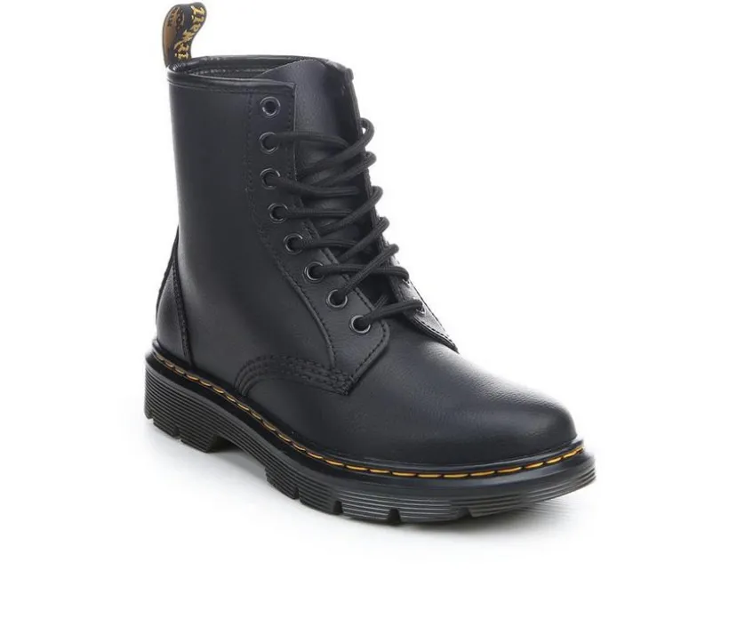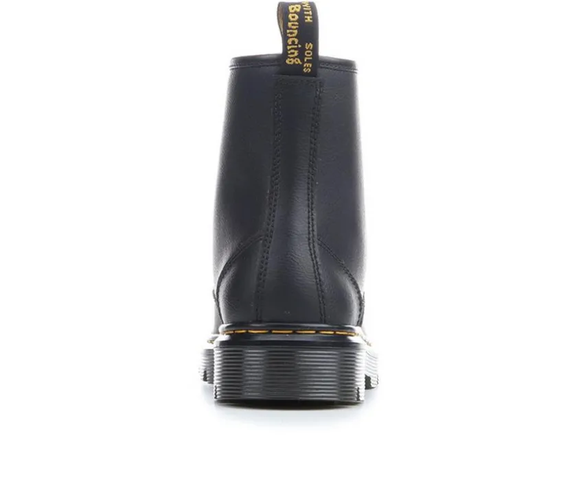 Bring iconic edge to your wardrobe with the Women’s Dr. Martens Aprile 8 Eye Booties. Crafted with a smooth leather upper, this combat-inspired style features the signature 8-eye lace-up design for a bold, timeless look. A chunky lug outsole delivers durability and traction, while contrast welt stitching adds classic Doc style. Finished with a back pull tab for easy entry, these boots are built for everyday wear with an attitude.