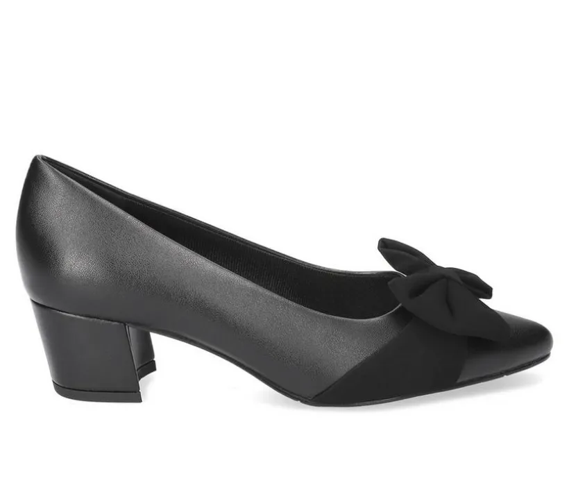 A feminine dress pump with a chic bow accent and clean, tapered lines. The sleek upper and pointed profile sharpen any outfit, while soft cushioning supports extended wear. A graceful mid heel delivers height with a stable, confident feel.