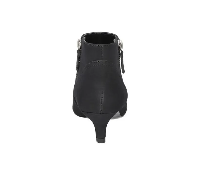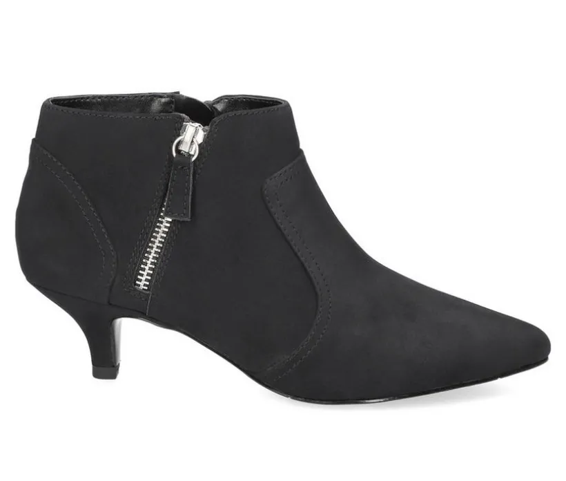 Enhance your wardrobe with the Annalee dress bootie by Easy Street. The pointed toe design offers ultimate sophistication. The feminine overlay is accentuated with an on-trend self-covered kitten heel. The double zipper gives a contemporary look to this timeless style. Padded heel-to-toe for all day comfort.