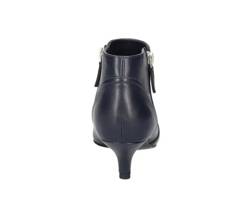 Enhance your wardrobe with the Annalee dress bootie by Easy Street. The pointed toe design offers ultimate sophistication. The feminine overlay is accentuated with an on-trend self-covered kitten heel. The double zipper gives a contemporary look to this timeless style. Padded heel-to-toe for all day comfort.