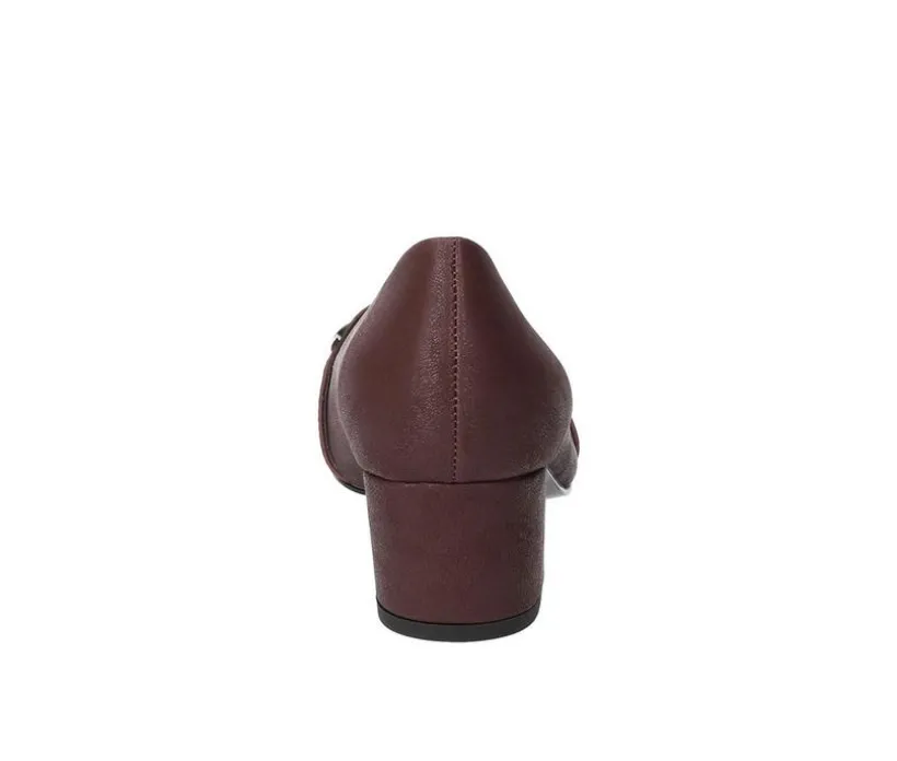 The Aster pump delivers timeless sophistication with modern comfort features. Designed with a sleek upper and statement buckle accent, it offers a polished look that pairs effortlessly with workwear or special occasions. A cushioned insole supports every step, while the block heel provides height with stability. This versatile style is perfect for dressing up or refining everyday outfits.