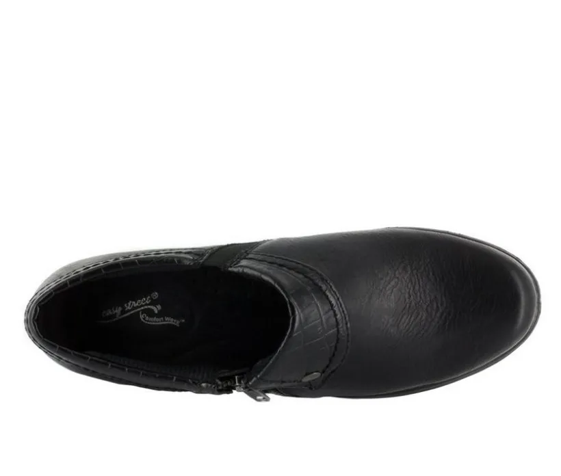 Perfect for work or weekend, the Darcy by Easy Street® features a perforated collar with metal studs and a functional metal zipper for a little urban attitude. Inside gore, a generously padded sock and a lightweight, flexible outsole provide comfort with movement.