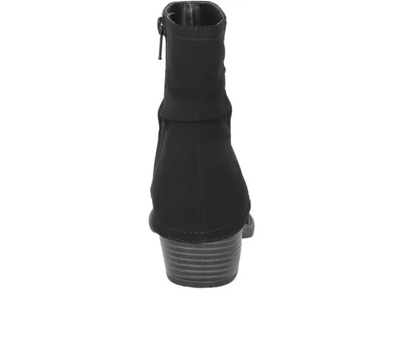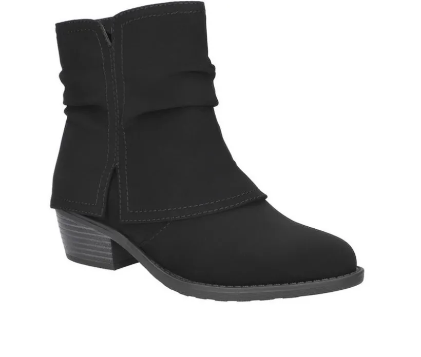 Celebrate style with the contemporary on-trend new Kudos ankle boot by Easy Street. Designed for fashion and comfort. The soft slouch overlay detail and underslung block heel will help transition any outfit to casual and fun! Padded heel-to-toe for added comfort and an inside zipper for easy on/off.