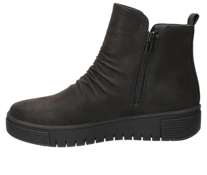 The Estella ankle boot from Easy Works by Easy Street is a stylish dual zip comfort bootie that will meet all your fashion needs with a pleated vamp and ornamented metal zipper. Featuring an on-trend platform and non-marking slip-resistant outsole, this ankle bootie is a fashionable and fun choice to wear for any casual occasion. Enhanced with the Easy Motion Pro Comfort system, the removable antimicrobial contoured insole is designed to provide all-day comfort and support.
