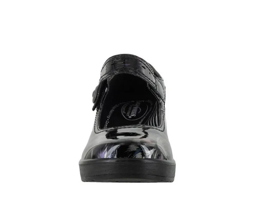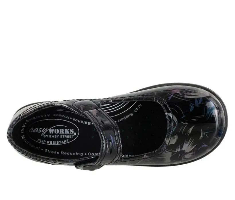 Durability and performance where you need it, the Letsee by Easy Works is a cute mary jane work shoe with a hook and loop closure strap, accented with a decorative button. Maximum support is enhanced by the molded footbed that provides supreme comfort and stability. The removable insole allows for extra roominess in one easy swoop. The outsole is crafted with grip inducing rubber treads for absorbing shock and slip prevention. Super lightweight with innovative technology to keep your feet feeling happy on those long, hard days.