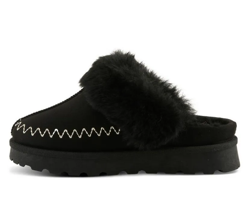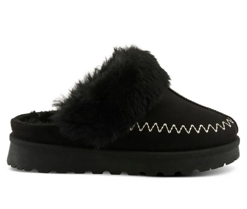 This easy clog brings lounge-ready comfort outside the house with a soft microsuede upper and plush faux-fur collar. The slip-on design keeps it simple, while a removable insole helps dial in the feel. A cushy, low lift and grippy PVC bottom support quick errands and relaxing downtime alike. Whipstitch accents add a crafted look that reads warm and inviting.