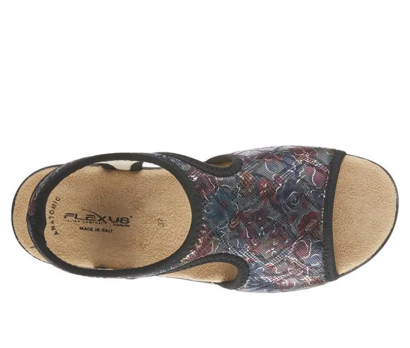 Flexus Style: NYAMAN-FLORALAn Italian sling back sandal featuring lycra stretch upper and back strap with a floral print design, all on a comfort padded anatomical footbed and flexible, anti-shock wedge sole for superior comfort.Upper: LycraLining: SyntheticInsole: MicrosuedeOutsole: PolyurethaneClosure: Slip-onHeel Height: 1 1/2″”Platform Height: 1/2″”Features: – Anatomic Insole, Arch Support, Comfort, Flexible Sole, Padded Insole, Premium, Shock absorbent Outsole, Stretchable- Arthritis shoes, Bunions, Diabetes, Edema/Swelling in the feet, Heel Spurs, Plantar Fasciitis.