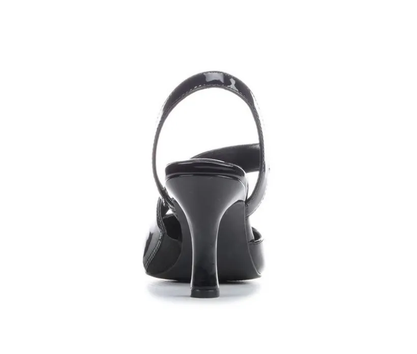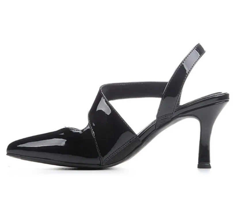 Sleek and striking, the Women’s Jones New York Telula Pumps heels showcase a glossy patent finish with a bold silhouette. The pointed toe elongates the look, while the slender high heel adds a polished lift. A midfoot strap detail provides both style and a more secure fit, making them a confident choice for evening events or special occasions. Perfect for pairing with dresses or tailored pieces when you want standout sophistication.
