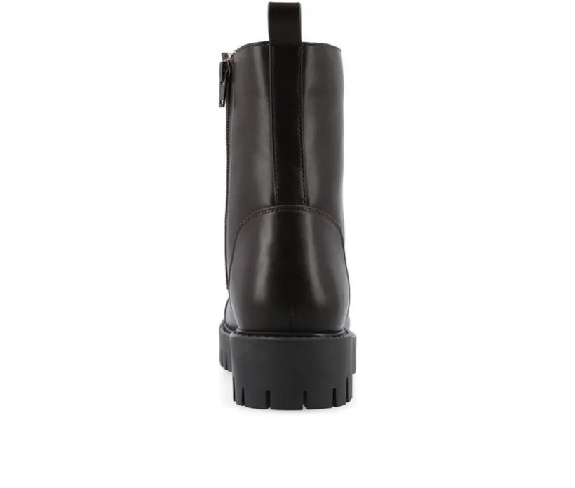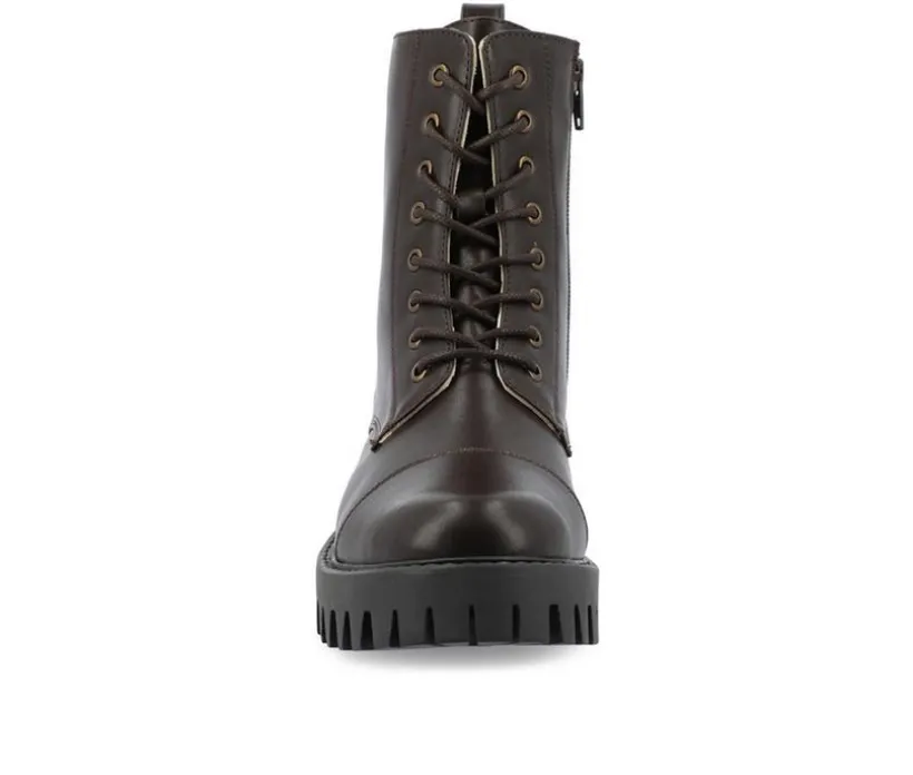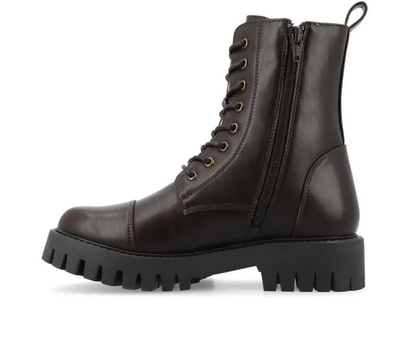 Meet Aaley by Journee Collection, the must-have ankle bootie for this season. These combat-style booties feature a lace-up detail and a convenient zipper for easy wear. Slip into all-day comfort with the 4 mm Tru Comfort Foam™ insole, while the treaded outsole ensures stability. Made with luxurious vegan leather, Aaley boasts a round-toe design and a trendy block heel, making them a daring and chic addition to your wardrobe.