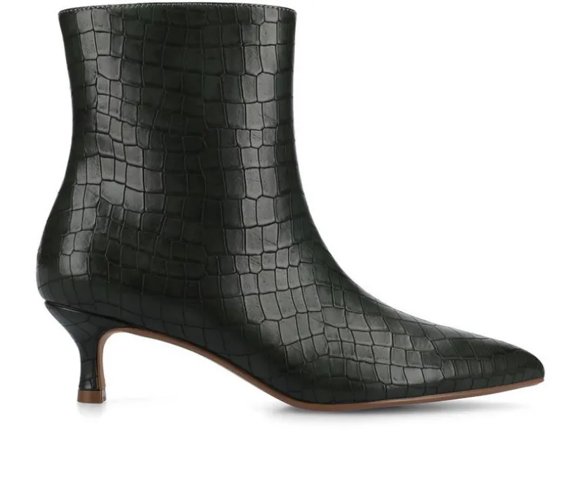 Fall fashion that has a point to make, the Arely bootie by Journee Collection. This kitten-heeled bootie is super chic thanks to the pointed toe and sleek inside zipper. Soft vegan leather and a 4 mm Tru Comfort Foam™ insole make them super comfy. At Journee Collection, our booties will give you that comfortable yet stylish look, perfect for when you’re in the office all the way to a fun night out with the girls.