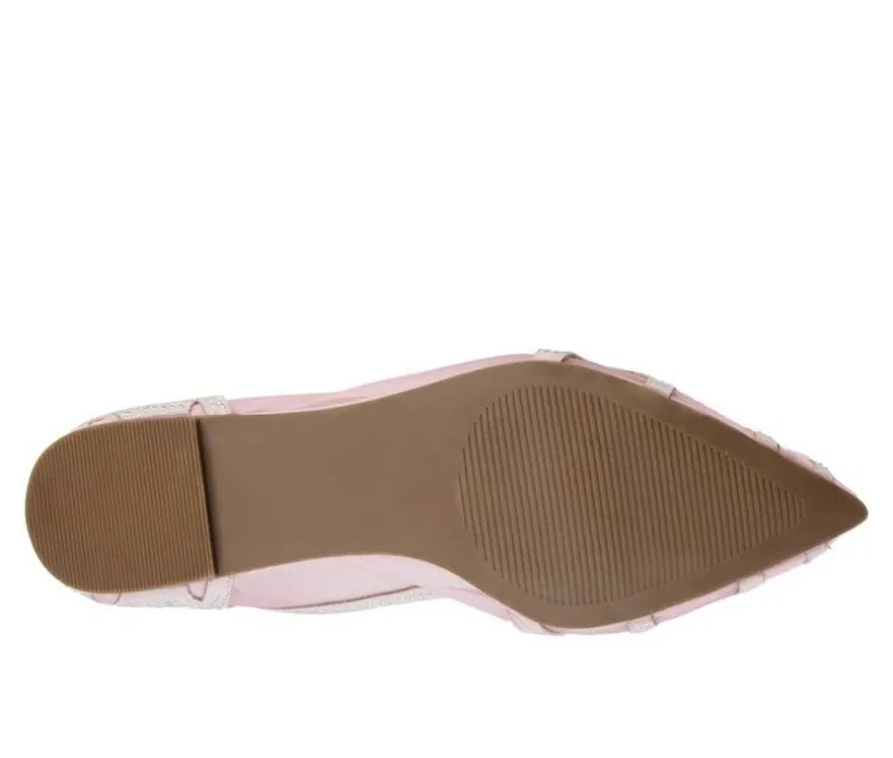 Want the beauty of a heel with the comfort of a flat? Meet Batavia by Journee Collection. This pointed toe flat has an intricate rhinestone detail and a pointed toe. It also features a scalloped heel cuff while the mesh fabric detail completes the design for a unique look.