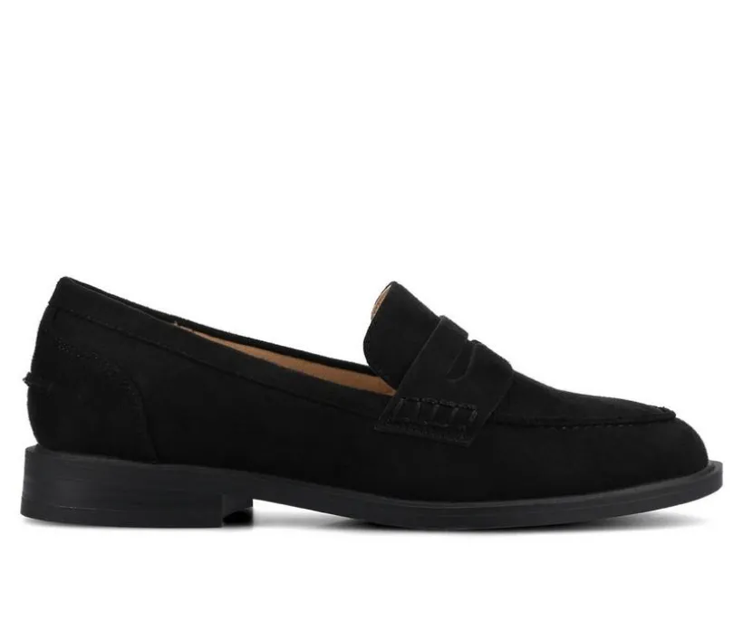 These loafers feature a timeless penny strap design with a versatile silhouette. The smooth upper pairs with a rounded toe for classic style, while a cushioned insole delivers lasting comfort. A slip-on profile ensures easy wear, and the low heel adds subtle polish.
