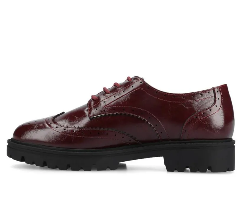 Introducing Claudiya by Journee Collection, the wingtip oxford flat that combines classic charm with vintage style. Made from vegan leather and featuring an almond-toe design with a chunky lug sole, Claudiya showcases a preppy and ivy league look that’s perfect for any occasion. With a lace-up style and 4 mm Tru Comfort Foam™ insole, Claudiya ensures a comfortable fit all day long, making it an essential addition to your shoe collection.