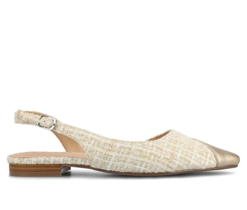 Step into sophistication with the Daphnne slingback flat from Journee Collection, featuring a pointed-toe silhouette and chic slingback design for a touch of elegance. The flats come in either tweed fabric or faux leather uppers, providing versatile options to suit your style. With a 4 mm Tru Comfort Foam™ insole and a subtle 1/2-inch block heel, these slingback flats effortlessly combine fashion and comfort for a polished look.