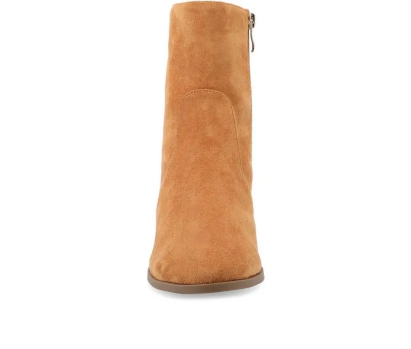 Step out in style with these Hayven booties from Journee Collection crafted from supple vegan leather. The stacked block heel adds a chic touch, while the inside zip ensures easy on and off. The almond toe gives these booties a flattering silhouette – while the 4 mm Tru Comfort Foam™ insole provides lasting comfort. With a 10 1/2-inch top circumference, they offer a secure fit. Perfect for a night out or everyday wear.