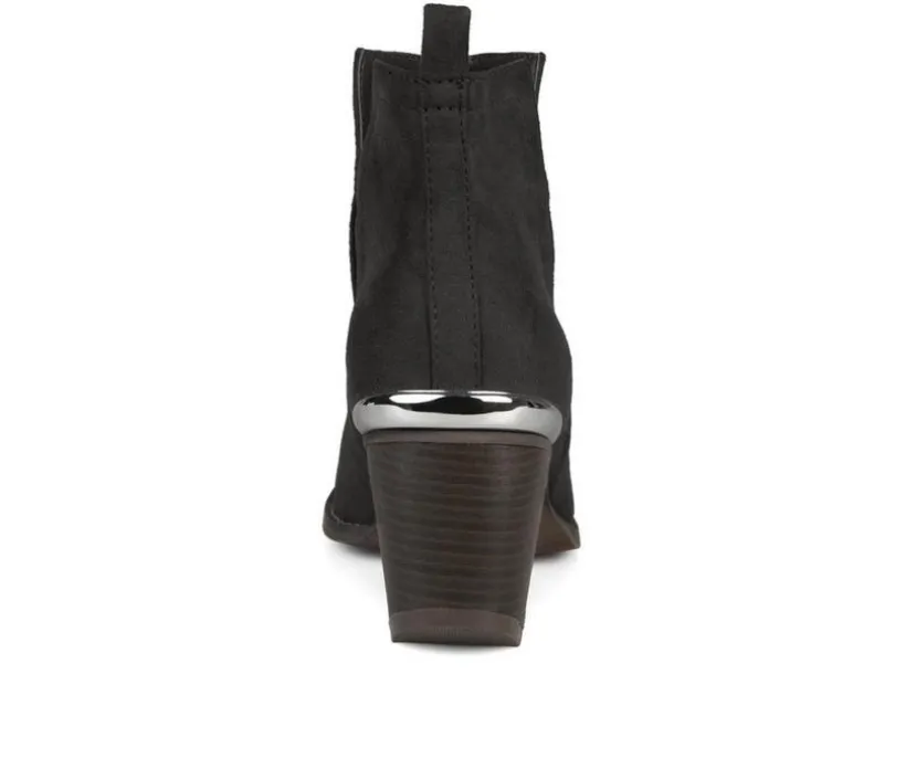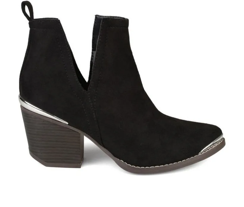 Rock the hottest trend this year in metal detail side split ankle booties by Journee Collection. These ankle booties feature soft faux suede uppers with chic side split detail on each side. Metal detail accents the toe tip and back heels to enhance the look