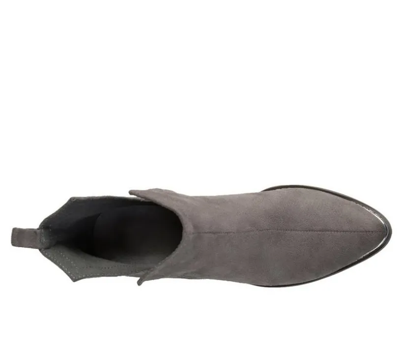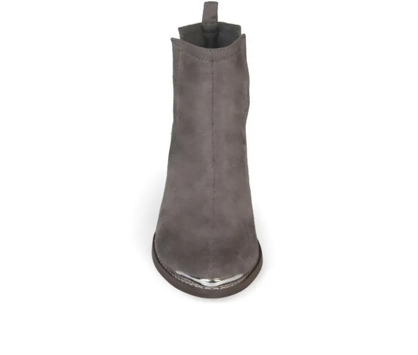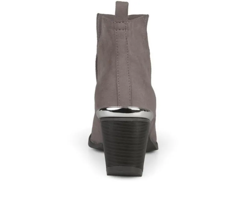 Rock the hottest trend this year in metal detail side split ankle booties by Journee Collection. These ankle booties feature soft faux suede uppers with chic side split detail on each side. Metal detail accents the toe tip and back heels to enhance the look
