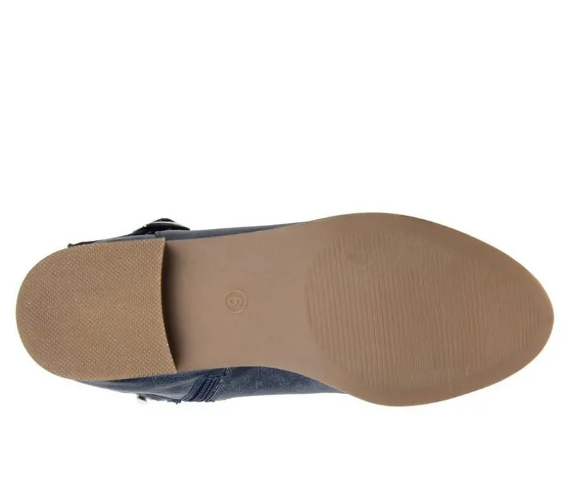 Distressed boots are all the rage right now, and the Ivie boot is a must have for any woman’s closet. This boot features a mid-calf rise, an almond toe, a memory foam comfort sole, and a layered strap design at the ankle featuring a square buckle. This layered design gives this simple boot a fresh new look.