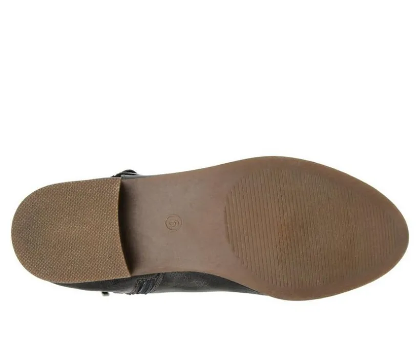 Distressed boots are all the rage right now, and the Ivie boot is a must have for any woman’s closet. This boot features a mid-calf rise, an almond toe, a memory foam comfort sole, and a layered strap design at the ankle featuring a square buckle. This layered design gives this simple boot a fresh new look.