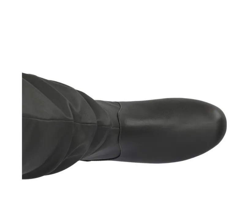 These classic extra wide calf knee-high boots bring timeless style and all-day comfort to your wardrobe. The sleek synthetic upper and soft padded interior provide a smooth, cozy fit, while the easy pull-on design makes them simple to wear. A flat heel keeps things comfortable and practical for daily wear, and the flexible TPR outsole offers dependable traction with every step. Perfect for pairing with leggings or dresses, these boots deliver effortless versatility.