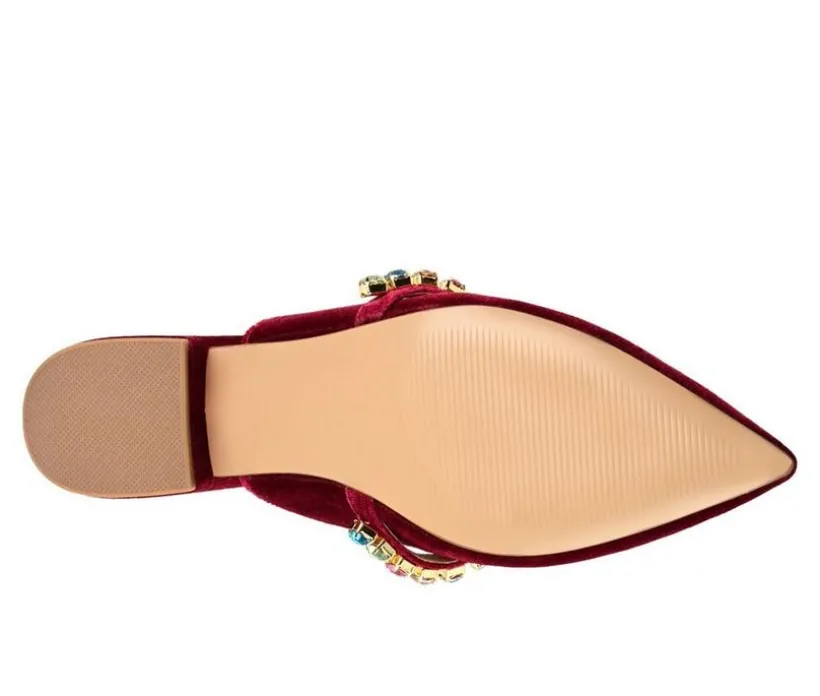 Add some sparkle to your look with the Jewel flats by Journee Collection. This velvet mule is as easy as it is stylish, thanks to the gemstone-covered strap and padded insole. A pointed-toe and a tiny covered block heel complete the silhouette for an elevated look.