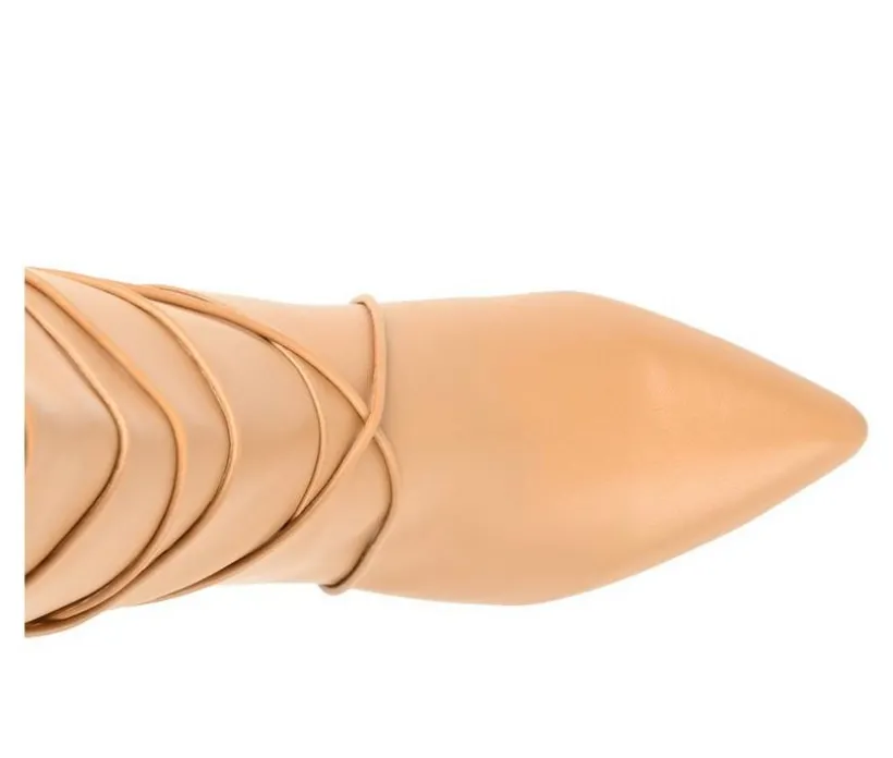 The Kaavia boots by Journee Collection are undeniable proof that pointed-toes and kitten heels have always been a stylish combo. This knee-high boot will add a chic finish to any look with its wrap-around strap detail and pointed-toe. A supportive 4 mm Tru Comfort Foam™ insole, soft vegan leather, and walkable heel finish this wide-calf style.