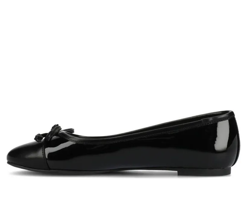The Kaiah ballet flat in wide-width from Journee is a chic women’s flat crafted from faux leather with a classic round-toe design. This dainty women’s flat features a delicate bow and cap toe for added style, while its slip-on designand cushioned insole ensures ease and comfort. This versatile flat is perfect for both casual and dressy looks.