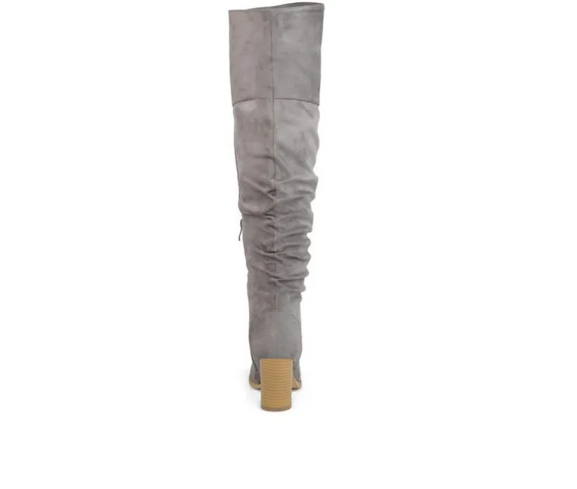 The Kaison is a ruched over-the-knee boots by Journee Collection is constructed with soft faux suede uppers that rise over the knees with raised vamps that create stylish detail. A rounded toe and stacked chunky high-heels finish the design to give you the perfect look for your day.