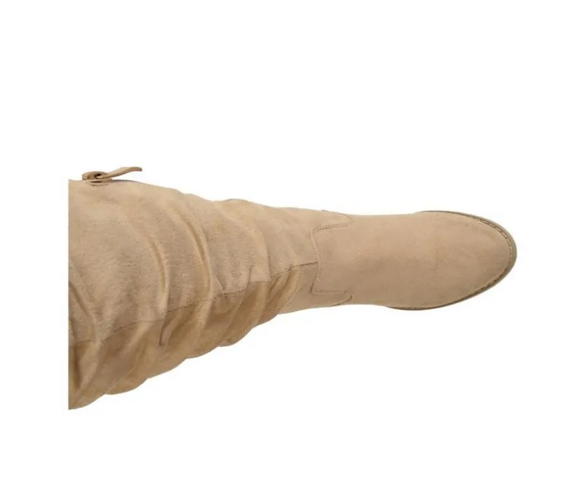 The Kaison is a ruched over-the-knee boots by Journee Collection is constructed with soft faux suede uppers that rise over the knees with raised vamps that create stylish detail. A rounded toe and stacked chunky high-heels finish the design to give you the perfect look for your day.