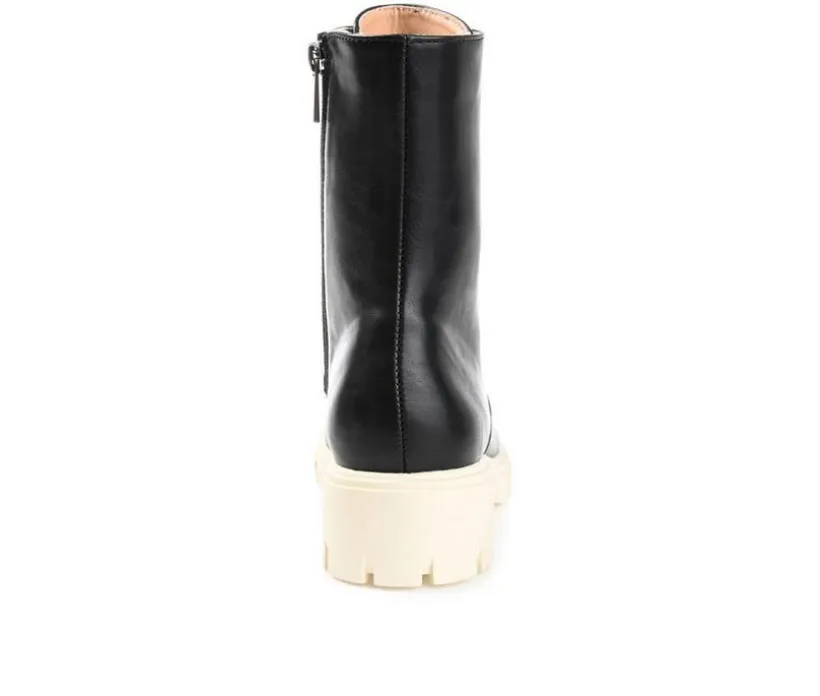 A true ride-or-die companion for all your upcoming plans, the Madelynn bootie by Journee Collection. With a 4 mm Tru Comfort Foam™ insole and soft man-made uppers, these high-top booties fit like a dream. A lug-sole and block heel adds the perfect lift and a combat-style lace-up detail with an inside zipper offers easy entry.