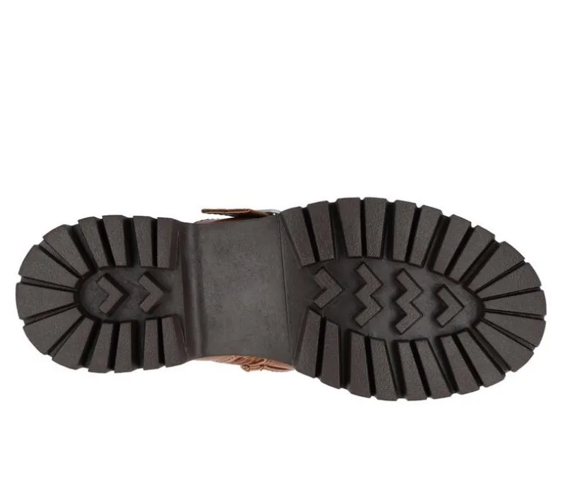 Introducing Maebry by Journee Collection, the edgy casual combat bootie that will add a cool vibe to any outfit. Made with vegan leather construction, Maebry features a block heel with treaded sole, lace-up detail with inside zipper, buckled double straps, and round toe. With a 4 mm Tru Comfort Foam™ insole, Maebry by Journee Collection offers all-day comfort.