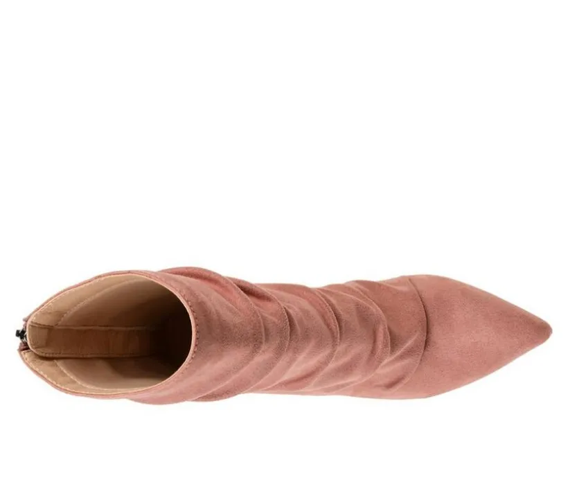 A shapely bootie featuring a pointed-toe and slouchy details. The Markie by Journee Collection is a flirtatious look rendered with vegan leather uppers fastened by a back zipper entry. A slender stiletto heel and a cushioned footbed ground this design.