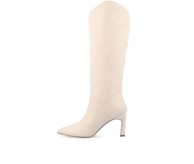 Introducing the Rehela boot by Journee Collection, the perfect blend of elegance and comfort. Crafted with vegan leather, these boots feature a stylish stiletto heel and pointed-toe design, adding sophistication to any outfit. The 4 mm Tru Comfort Foam™ insole ensures a cushioned step, while the pull-on style and center seam detail offer convenience and a sleek look. Step out in confidence with the Rehela boot.