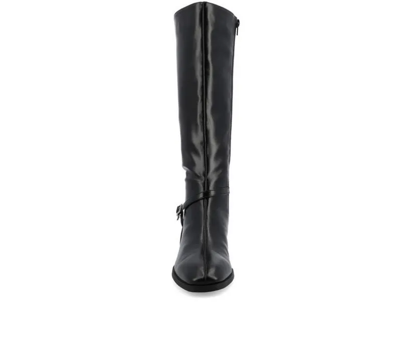 Meet the Rhianah boot by Journee Collection. These knee-high boots are perfect for both style and comfort. These boots are made with vegan leather and a block heel and are ready for anything. The 4 mm Tru Comfort Foam™ insole ensures a cozy step, while the strap and buckle detail, center seam, inside zip, and square toe design add fashion and function to your look. Step out in confidence and stay on-trend with the Rhianah boot.