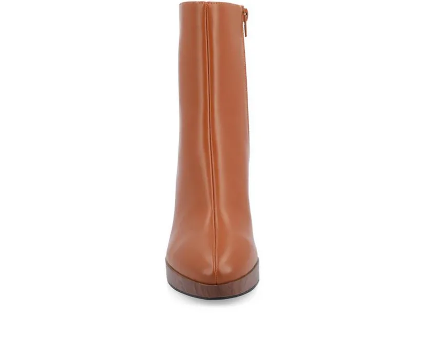 Get a stylish look for any occasion with these trendy Romer booties from Journee Collection. The luxe vegan leather looks and feels great with any outfit you throw on, and the faux wood platform and block heel give them a cool touch. They’re super fashionable with a center seam detail and an almond toe. These booties have a 10 1/2-inch top circumference and a comfy 4 mm Tru Comfort Foam™ insole. Putting them on is a breeze with the inside zipper