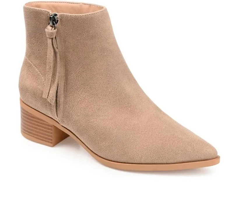 Take every stride in style with the Sadiya bootie by Journee Collection. This pointed-toe silhouette features soft vegan leather elevated by a stacked block heel. A 4 mm Tru Comfort Foam™ insole makes them super comfy and a side zipper embellished with a tassel makes them easy to slip on.