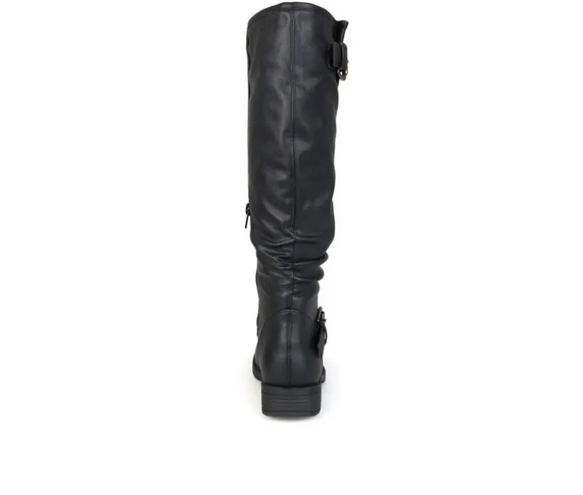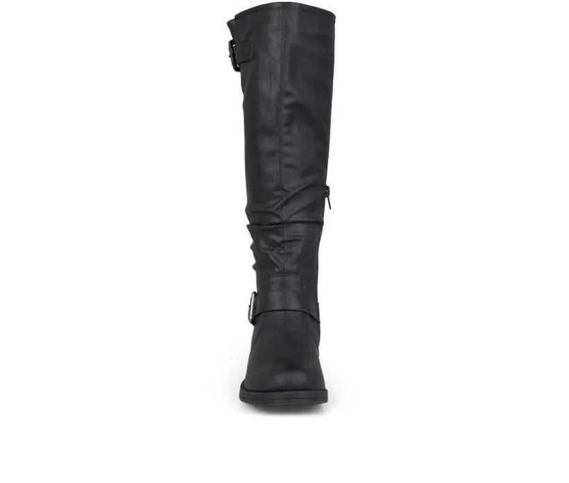 Add classic footwear to your style this season in the Stormy riding boots by Journee Collection. These stylish boots feature premium faux leather that rises below the knees. Straps with buckle embellishment and a classic round toes complete the design.