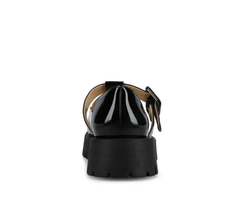 Introducing Suvi by Journee Collection, a classic flat with a twist. These 90s-style T-strap mary jane flats have a round toe and a buckle detail. Made of high-quality vegan leather, these shoes are both fashionable and easy on the feet. The 1 1/2-inch chunky treaded sole provides plenty of grip and stability, while the 4mm Tru Comfort Foam™ insole ensures all-day comfort.