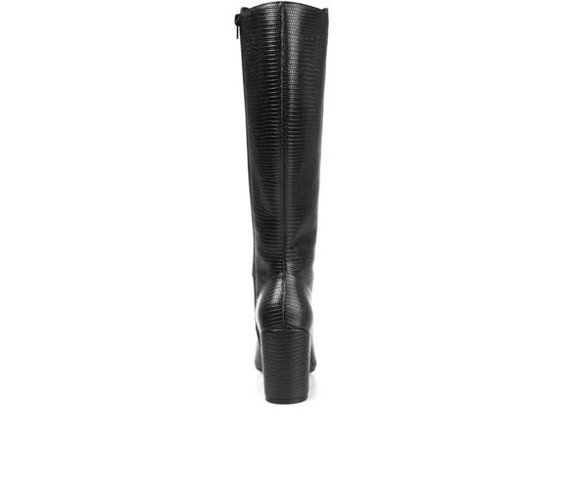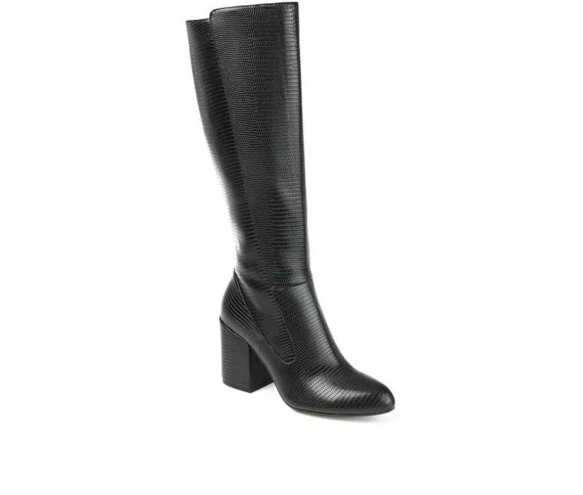 The search for a comfortable and stylish boot ends here. The Tavia boots by Journee Collection feature lizard textured vegan leather uppers detailed with an inside zipper and a wide-calf. A 4 mm Tru Comfort Foam™ footbed makes them comfortable to stand in, and a block heel adds the perfect amount of height.