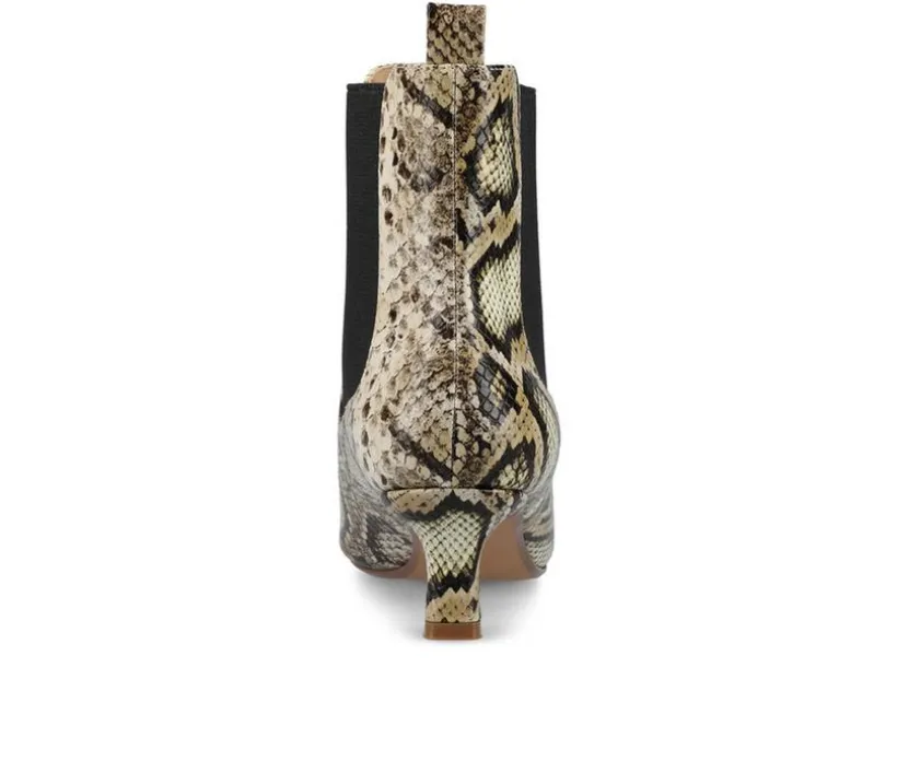 So easy and stylish, the Tenlee bootie by Journee is sure to become a favorite go-to. This pointed-toe bootie is effortlessly stylish thanks to its chelsea stretch details and kitten heel. Soft vegan leather shapes the look and a 4 mm Tru Comfort Foam™ footbed offers long-lasting support. At Journee, our booties will give you that comfortable yet stylish look, perfect for when you’re in the office all the way to a fun night out with the girls.