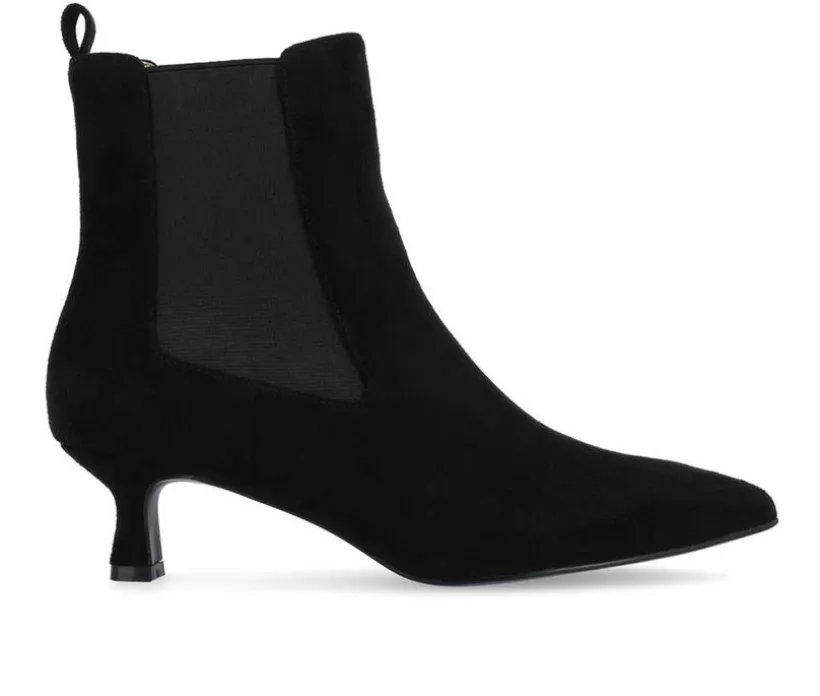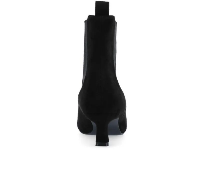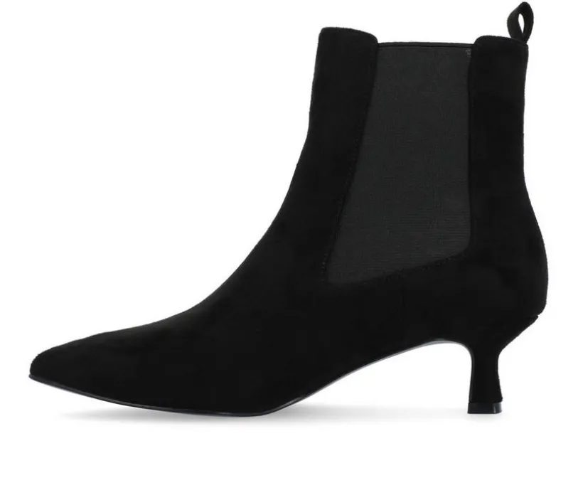 So easy and stylish, the Tenlee bootie by Journee is sure to become a favorite go-to. This pointed-toe bootie is effortlessly stylish thanks to its chelsea stretch details and kitten heel. Soft vegan leather shapes the look and a 4 mm Tru Comfort Foam™ footbed offers long-lasting support. At Journee, our booties will give you that comfortable yet stylish look, perfect for when you’re in the office all the way to a fun night out with the girls.