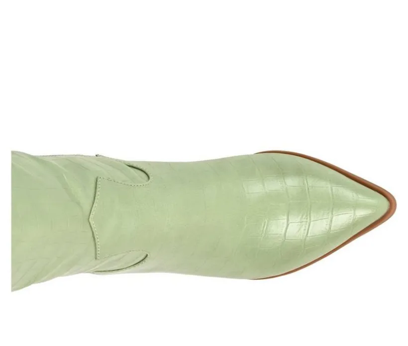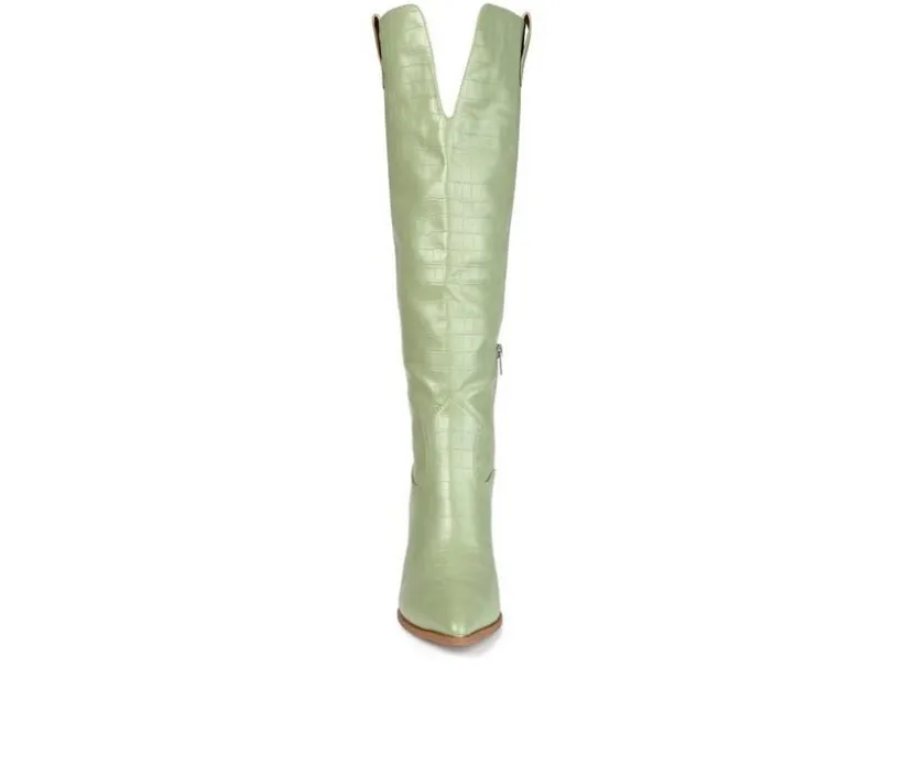 Do you prefer the city or the country? Well, why not embrace both sides with the Therese boot by Journee Collection! A stacked block heel and croc textured vegan leather detail this knee-high boot for a sassy look. This rodeo-inspired design features a wide-calf features a 4 mm Tru Comfort Foam™ insole for supportive and comfortable wear.