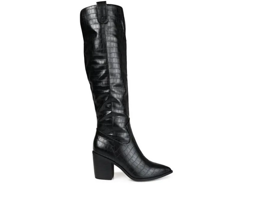 Do you prefer the city or the country? Well, why not embrace both sides with the Therese boot by Journee Collection! A stacked block heel and croc textured vegan leather detail this knee-high boot for a sassy look. This rodeo-inspired design features a wide-calf features a 4 mm Tru Comfort Foam™ insole for supportive and comfortable wear.