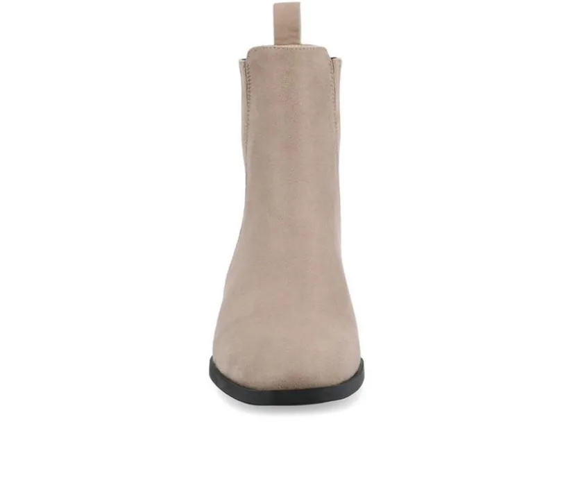 The Wrenley booties from Journee Collection are perfect for a relaxed, casual look. The soft, flexible vegan leather and stacked block heel add a nice touch to anything you throw on. These are Chelsea-style booties with side gore stretch for an easy fit. Just pull them on, and you’re good to go. With a square toe, a 10-inch top circumference, and a comfy 4 mm Tru Comfort Foam™ insole, these booties are great for a comfortable and laid-back style.