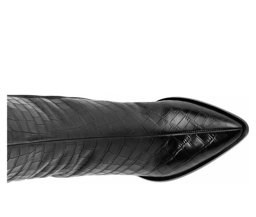 Fiercely take on the new season with the Laila boots by Journee Signature. This wide-calf style features a 4 mm Tru Comfort Foam™ footbed and a stacked block heel for a comfortable lift. Croc textured genuine leather uppers and an almond-toe perfect the design.