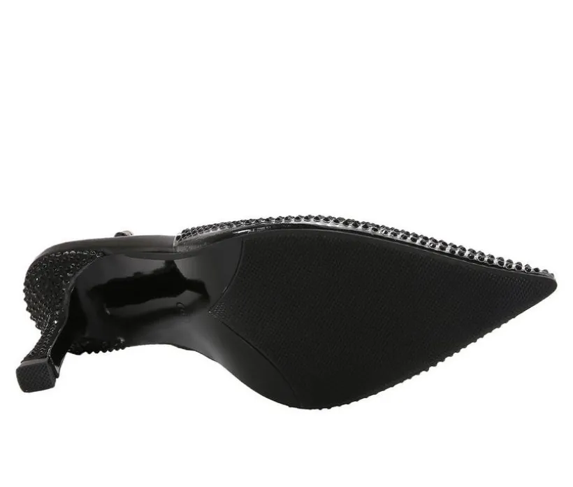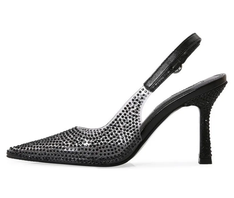 Elegant and eye-catching, these heels bring a sophisticated sparkle to any occasion. Featuring a man-made upper with glittering accents, they’re designed with a pointed toe silhouette and slingback strap for a timeless finish. The high stiletto heel adds graceful height, while the secure buckle closure ensures a comfortable fit from day to night.