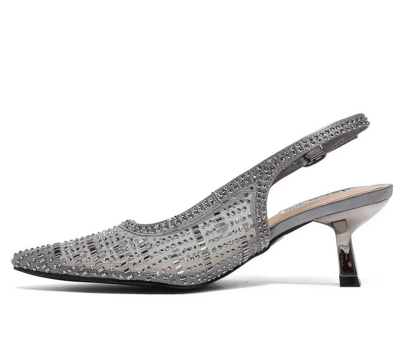 Dazzle at every occasion with these elegant slingback heels designed to shine. Crafted with a sparkling mesh upper and a pointed toe, this style offers both glamour and sophistication. The adjustable slingback strap ensures a secure fit, while the low 2″ heel gives just the right amount of lift without sacrificing comfort. Perfect for weddings, parties, or special nights out, these heels make every step unforgettable.