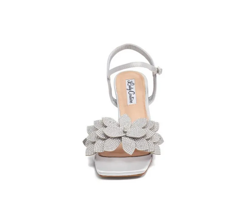 Glitz, glam, and garden party charm come together in this dazzling sandal built for festive occasions. A bold layered floral accent graces the front strap, adding texture and eye-catching sparkle to every step. The shimmery upper and sculpted heel create an elegant silhouette, while the open toe and adjustable ankle strap offer breathable comfort and a custom fit. Perfect for weddings, dances, or nights out, this style turns any outfit into a showstopper.