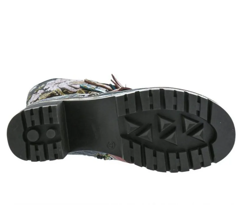 Brigthen up your Fall style with the L’Artiste Brazen. These booties are all about invidiuality with an embroidered floral tapestry shaft, embossed leather vamp, and multi-colored straps each featuring a different buckle design!